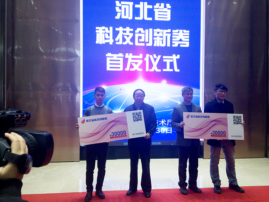 2016年12月30日,河北省科技創(chuàng)新券首發(fā)儀式暨創(chuàng)新服務(wù)提供機(jī)構(gòu)授牌儀式在石家莊舉行。省科技廳黨組副書記、副廳長郭玉明出席活動并講話,并對科技創(chuàng)新券的使用提出了具體要求。來自省內(nèi)的30家創(chuàng)新創(chuàng)業(yè)團(tuán)隊(duì)代表參會,石家莊高新區(qū)科技局代表審核發(fā)放機(jī)構(gòu)介紹個創(chuàng)新券使用說明及首批申領(lǐng)情況。郭玉明副廳長為10家創(chuàng)新服務(wù)提供機(jī)構(gòu)授牌,并為10家創(chuàng)新券申領(lǐng)單位代表發(fā)券。