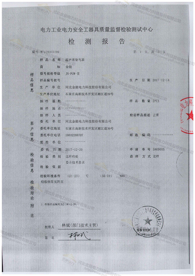 超聲波驅(qū)鳥(niǎo)器檢測(cè)報(bào)告